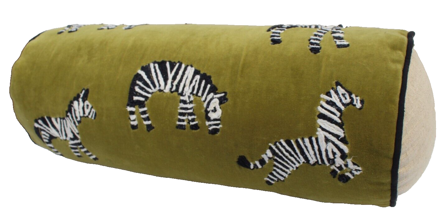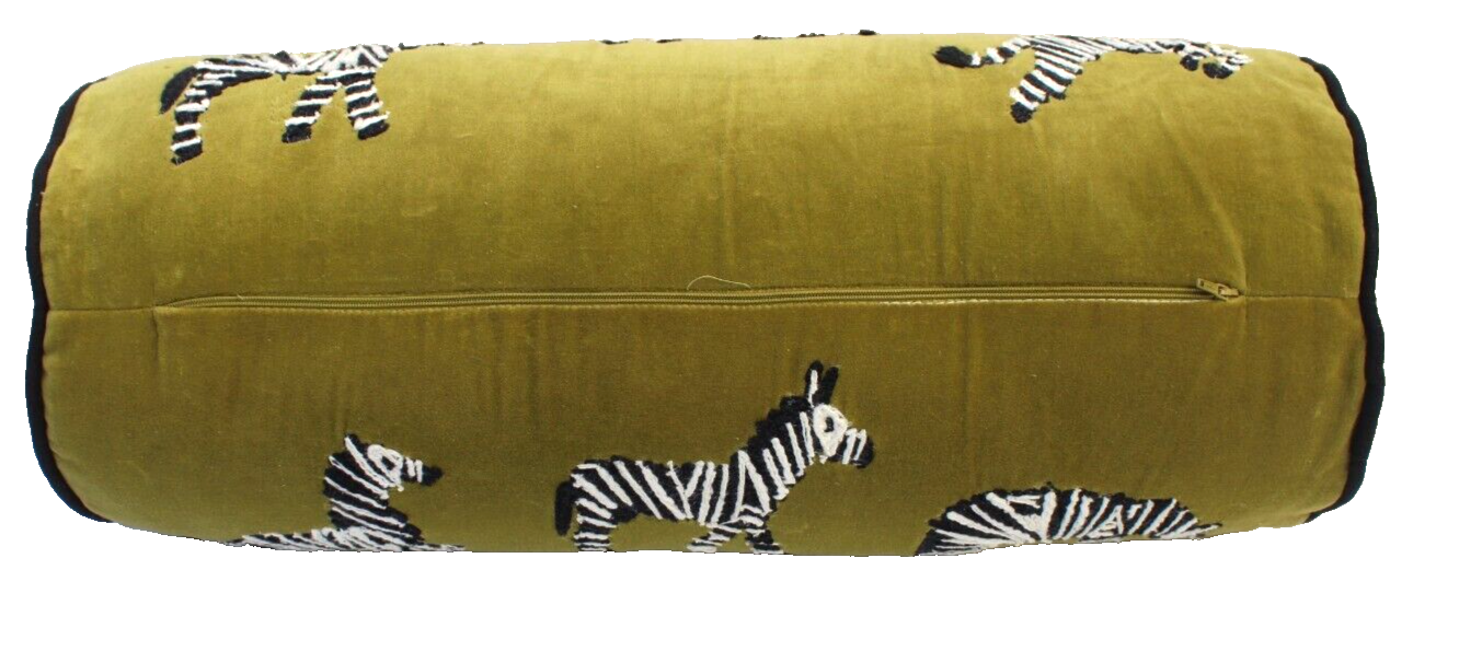 New Green Zebra BOHO Jungle Round Long Roll Tube Pillow Throw Rectangular