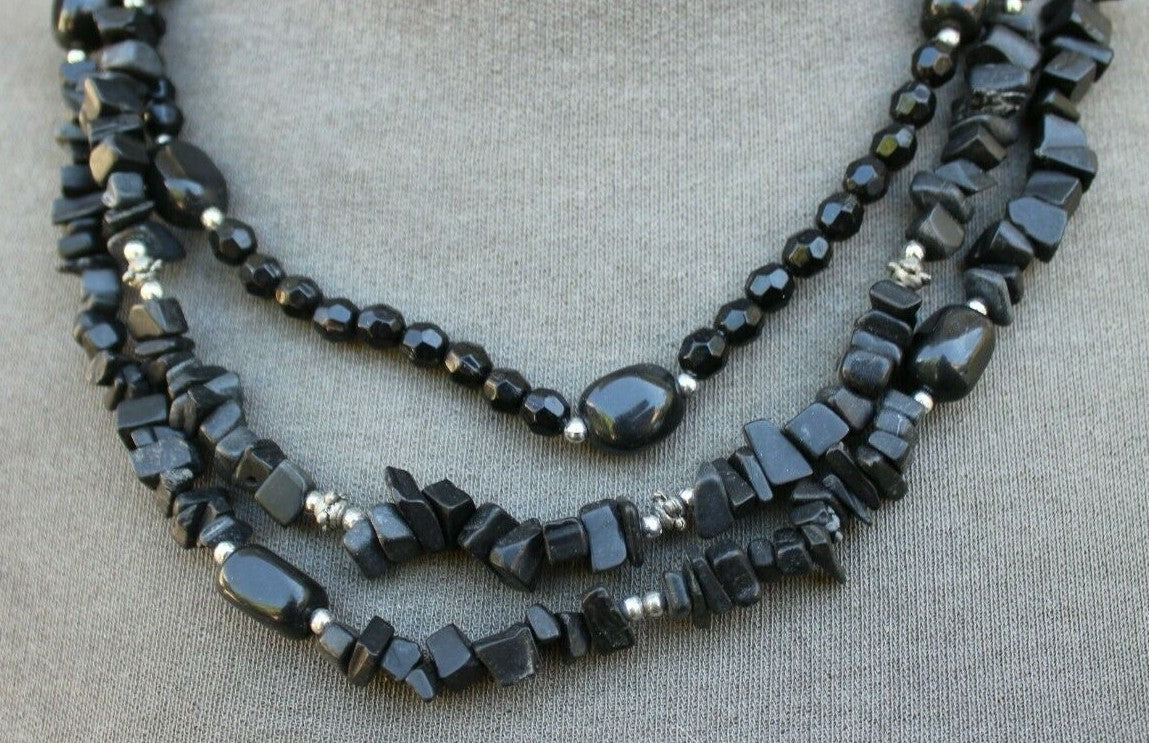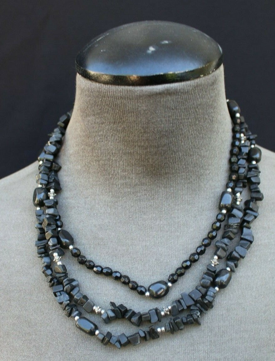 Vintage Black Chunky Stone Beaded Choker Cocktail Costume Necklace