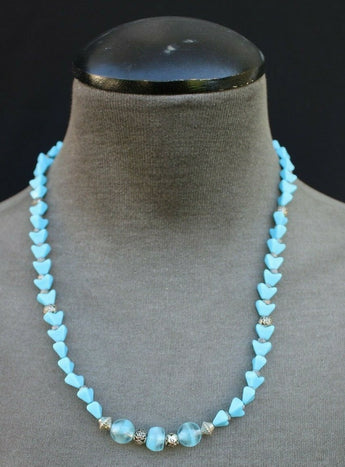Vintage Blue Gemstone Heart Shaped Beaded Choker Cocktail Costume Necklace