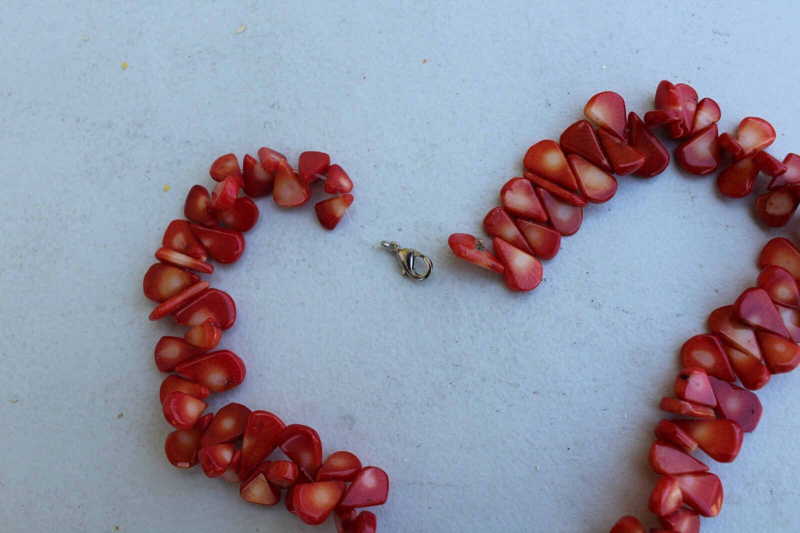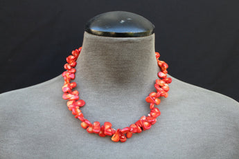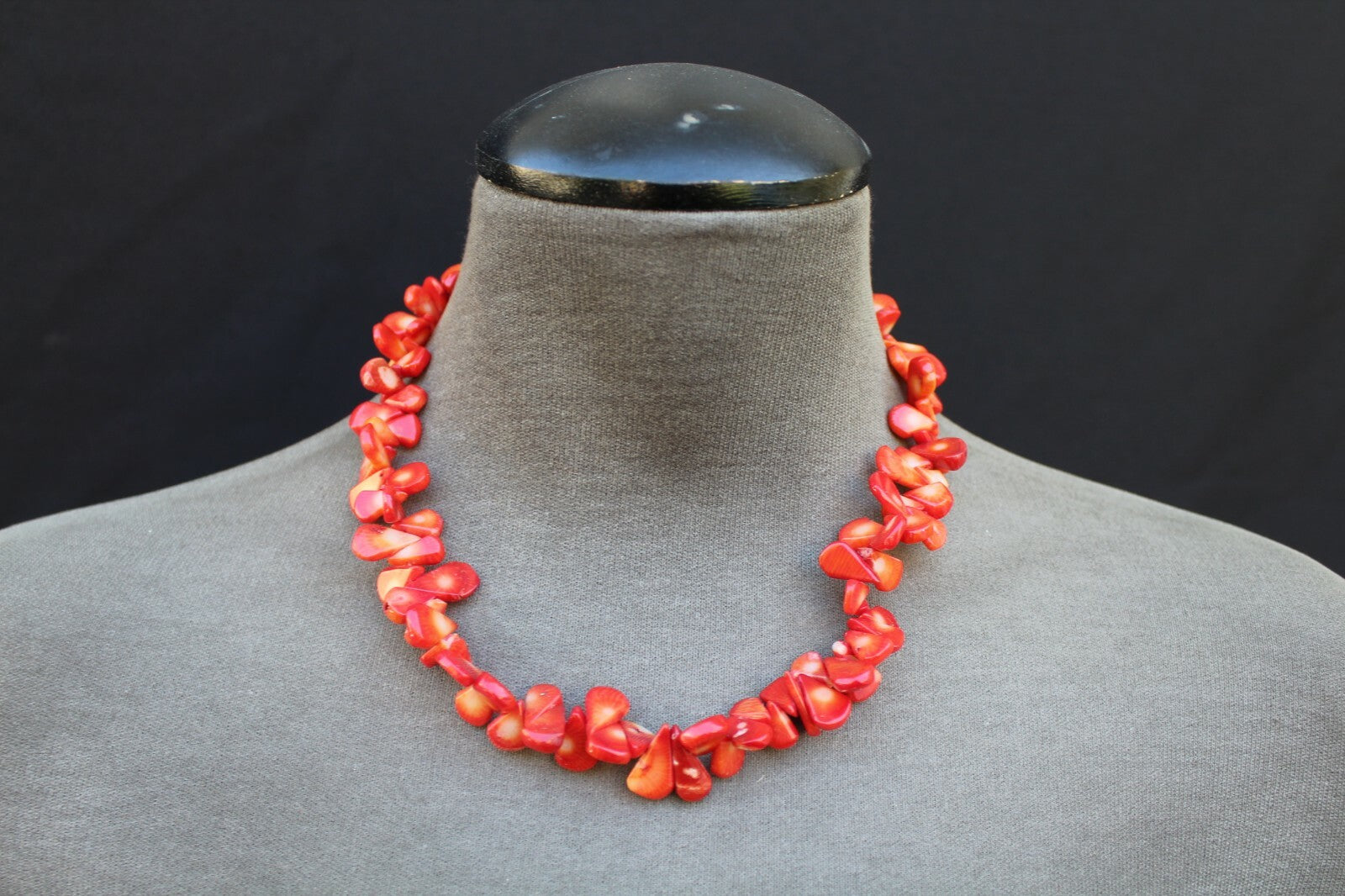 Vintage Retro Abstract Red & White Stone Cocktail Costume Necklace