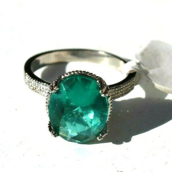 Vintage Teal Raised Crown Gemstone 925 Sterling Silver Cocktail Ring Sz 8