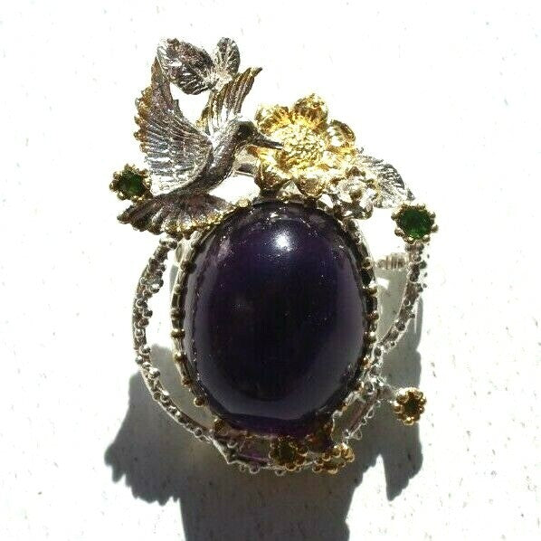 Vtg Sterling Silver .925 Retro Humming Bird Pin Brooch Gaudy Costume Jewelry