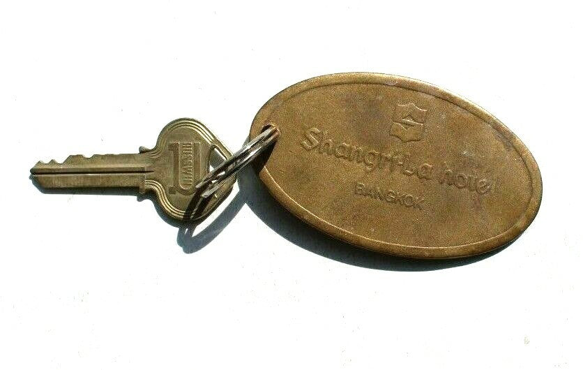 RARE Vtg Brass Shangri-La Hotel Bangkok Motel ROOM KEY / CHAIN Room #1811