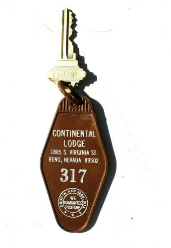 Vtg Continental Lodge RENO Nevada Motel Hotel Return ROOM KEY Keychain (#317)