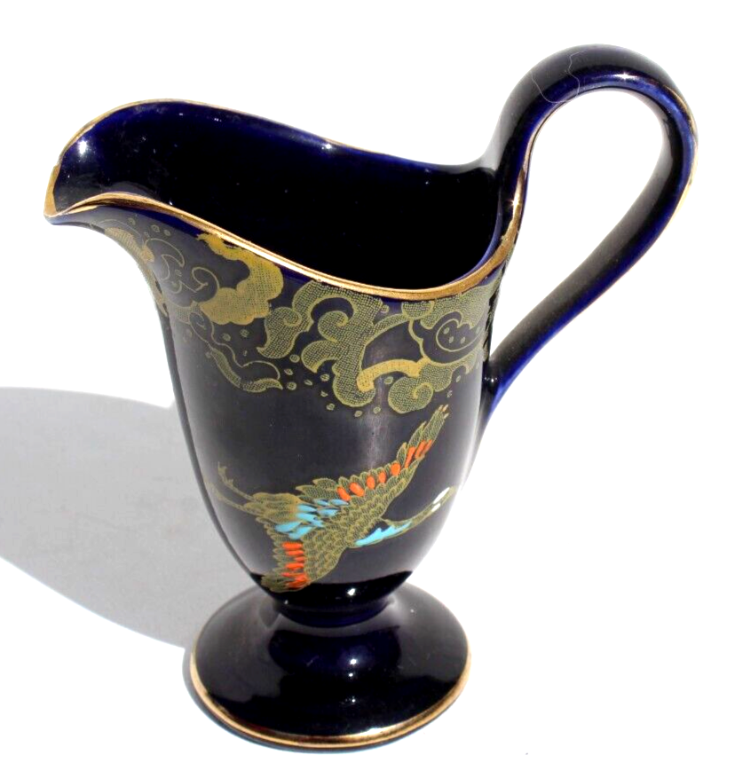 Vintage 1920s HH&G Ltd England Hand Painted Blue GOLDEN MOON Creamer