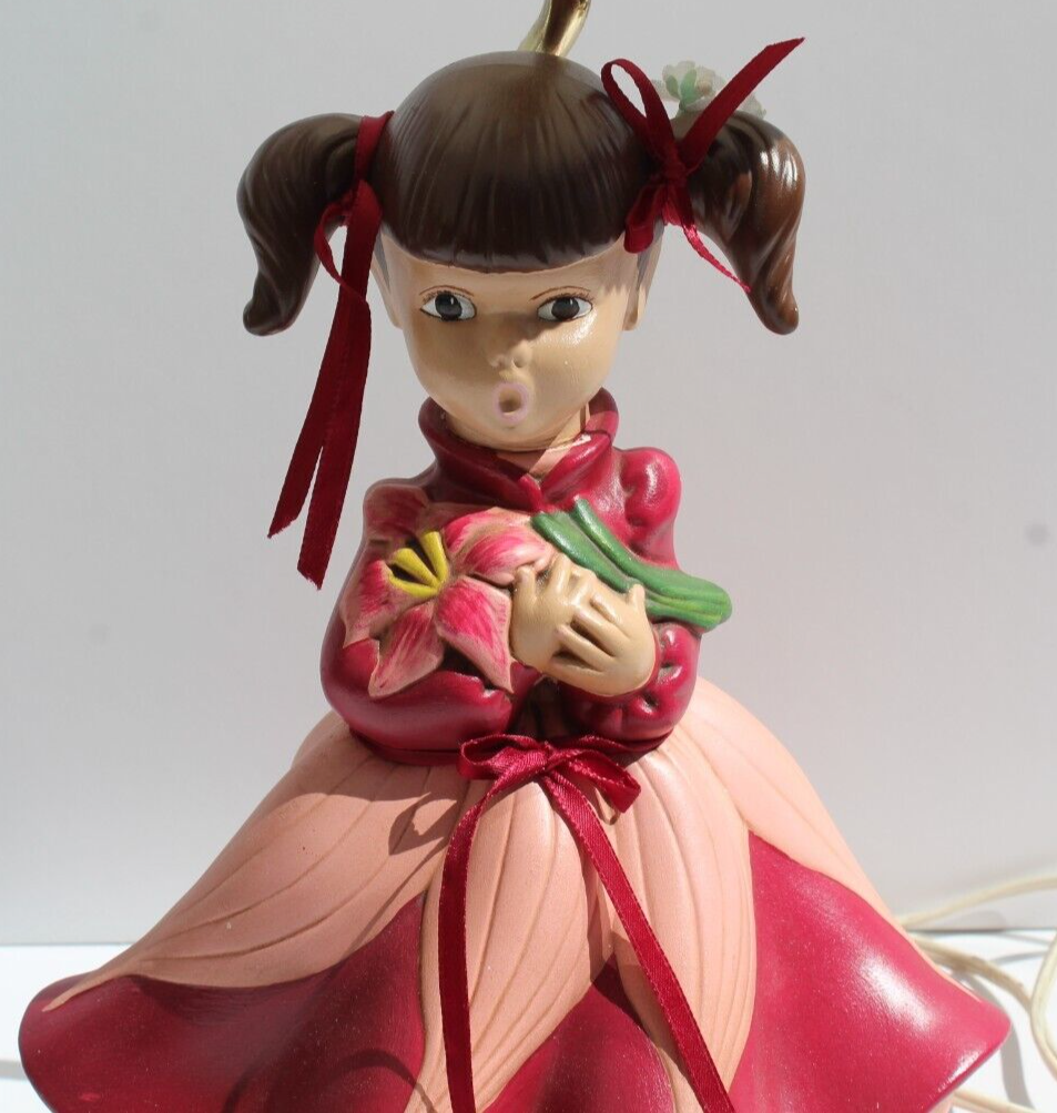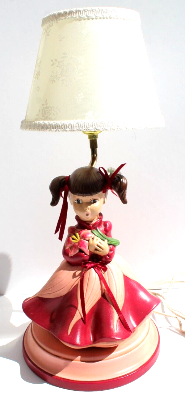 Vintage Shabby Chic Nursery Lamp Atlantic Mold Girl in Pink Dress W/ Piggy Tails
