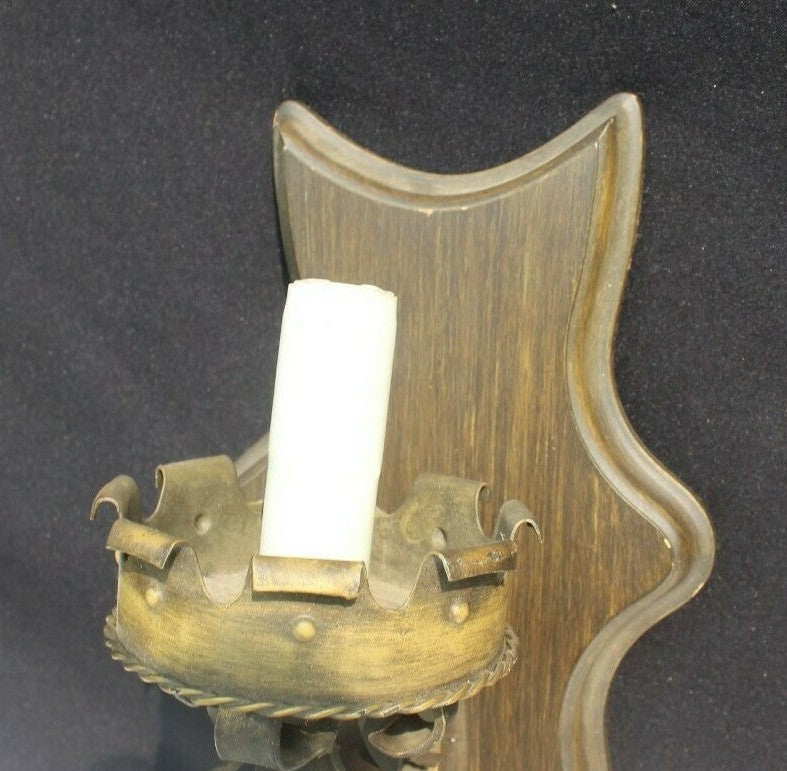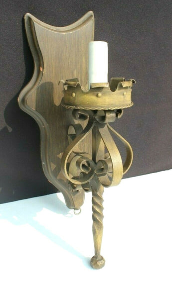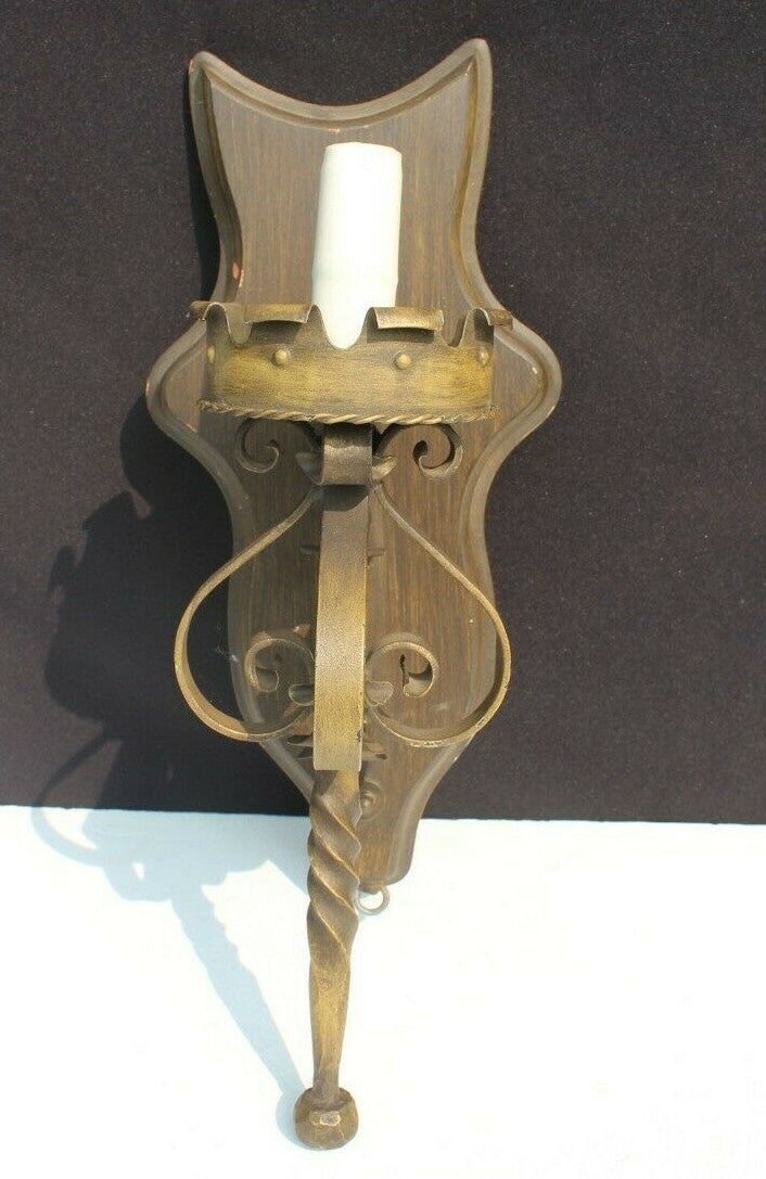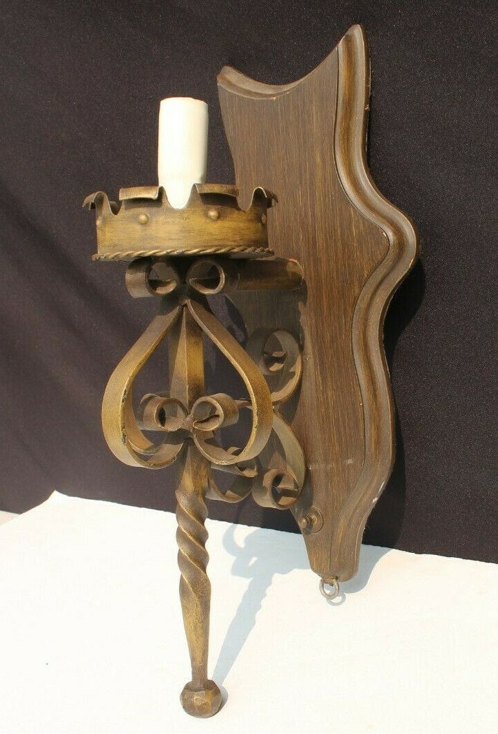 Vtg Hollywood Regency Medieval Gothic Torch Light Electric Wall Lamp Metal