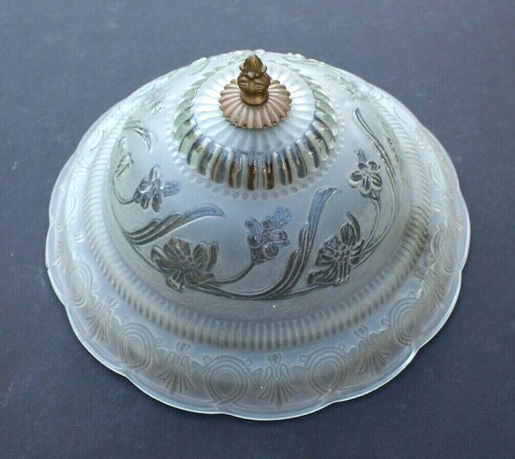 Vtg Victorian Glass Ceiling Light Shade Clear Embossed Vine & Flowers Design