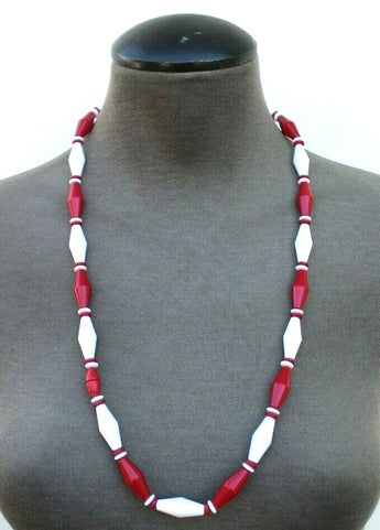 Vintage 1960s Red & White Retro MCM Abstract Long Cocktail Costume Necklace
