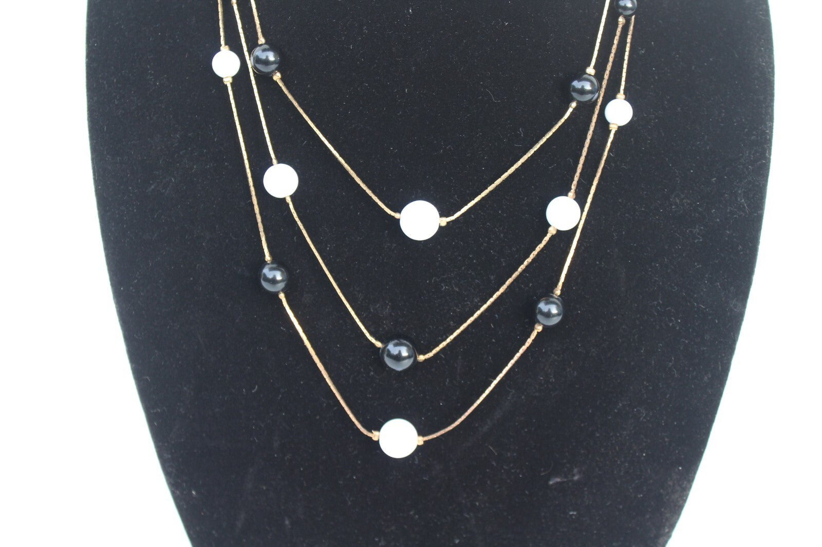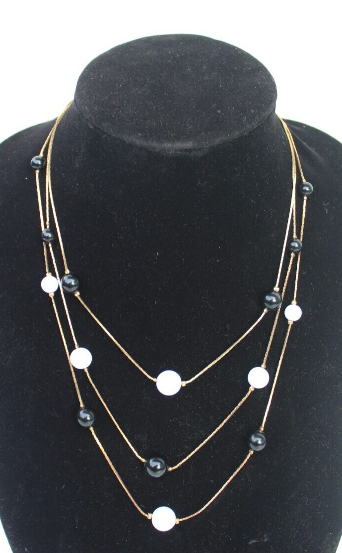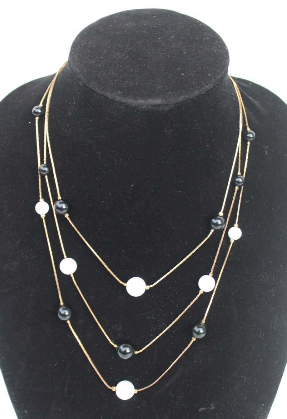 Vtg Art Deco 3 String Beaded Retro MCM Abstract Costume Jewelry Necklace