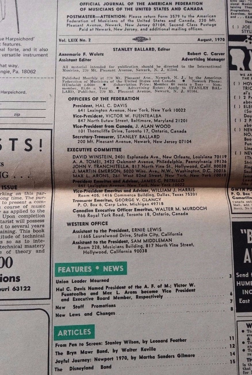 Vtg August 1970 INTERNATIONAL MUSICIAN American Federation Of Musicians Paper