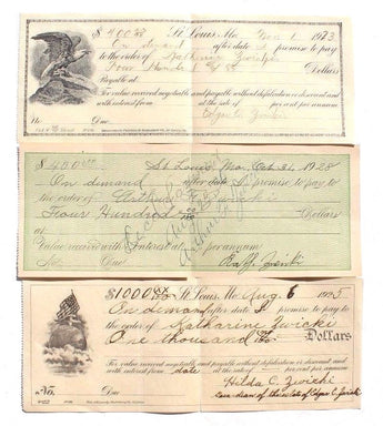 Lot Of 3 Vintage 1900s Check Stubs / Bonds Paychecks Bank Paper