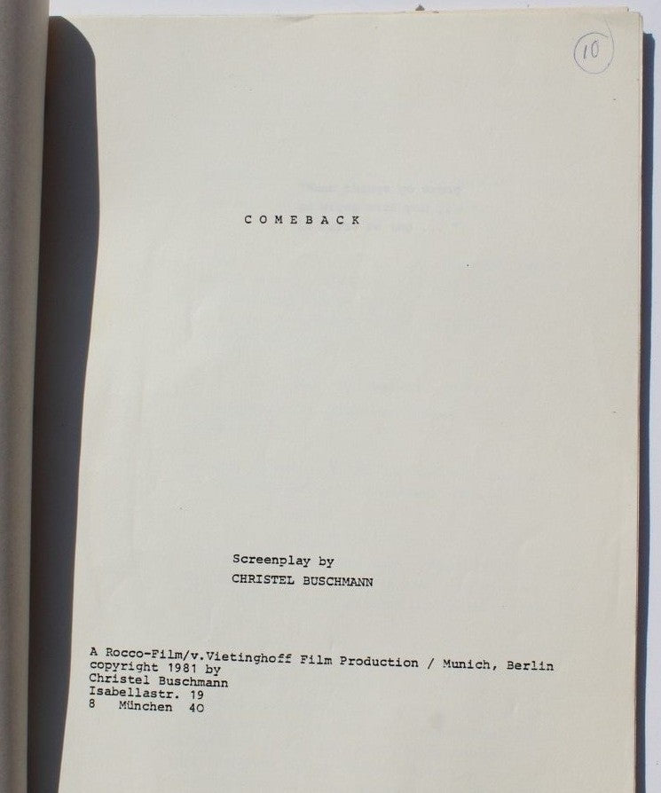 Vtg 1982 Comeback Movie (Drama) Christel Buschmann Story & Screen Play Script