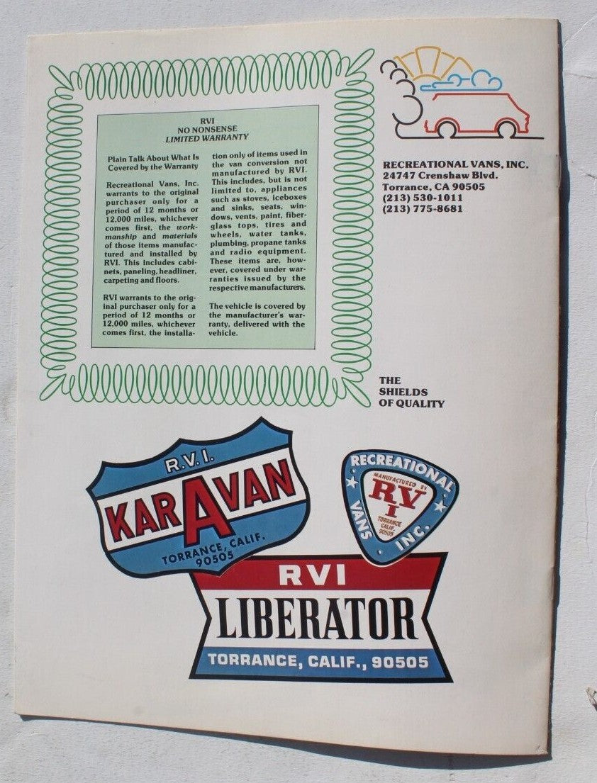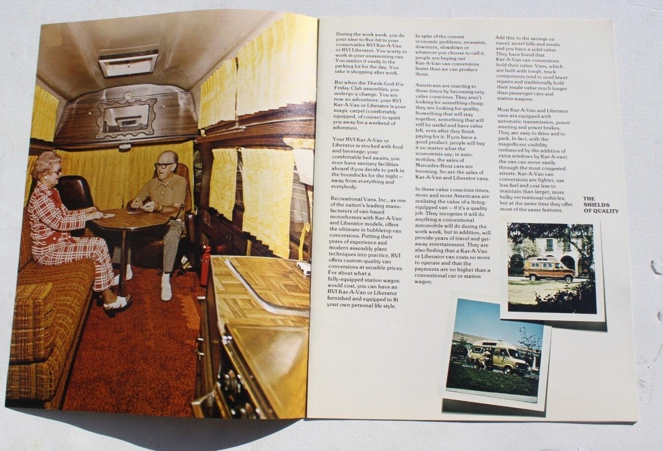 Vintage 1970s RVI Kar-A-Van Recreational Buyer’s Dealer Sales Brochure NOS
