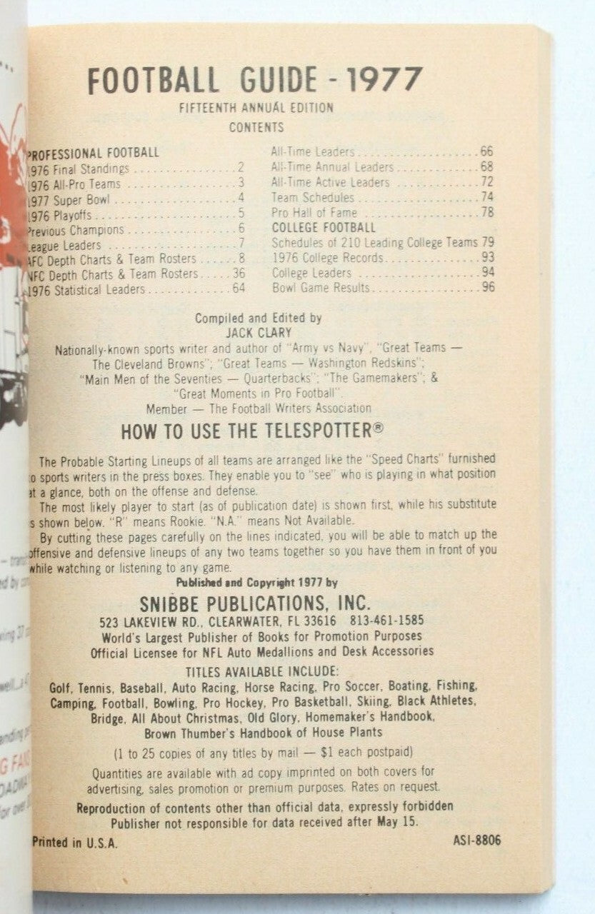 Vintage 1977 Roadway Football Guide (College & Professional) Mini Booklet