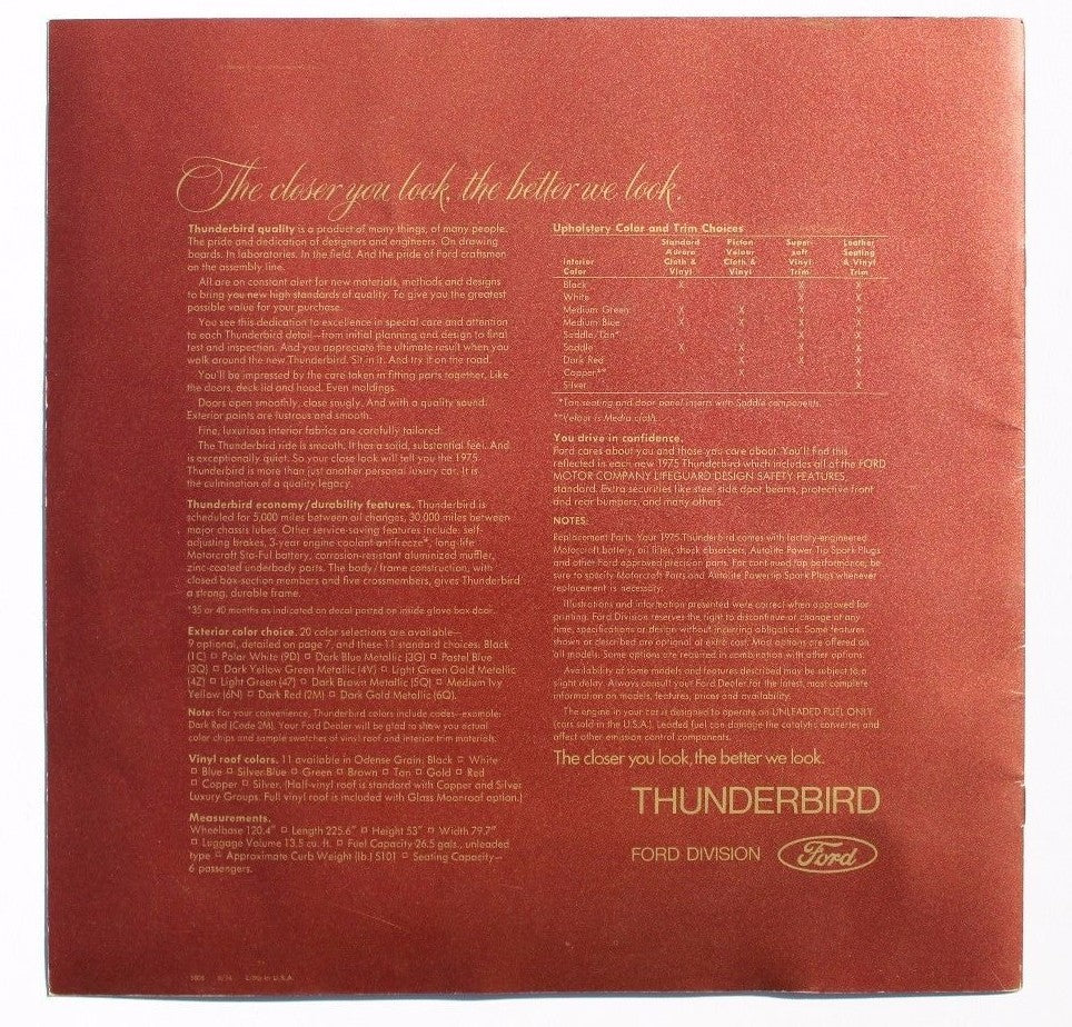 Vintage THE 1975 Thunderbird 20th Anniversary Brochure Booklet Car Buyer Guide