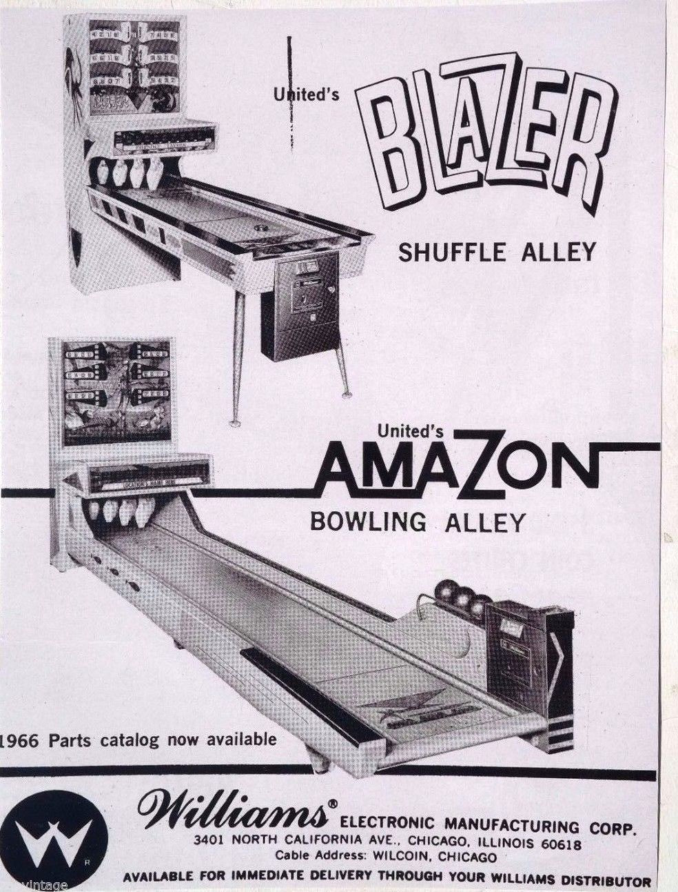 Vtg 1966 Blazer Amazon Bowling Alley Coin Operated Machine Ad / Advertisement