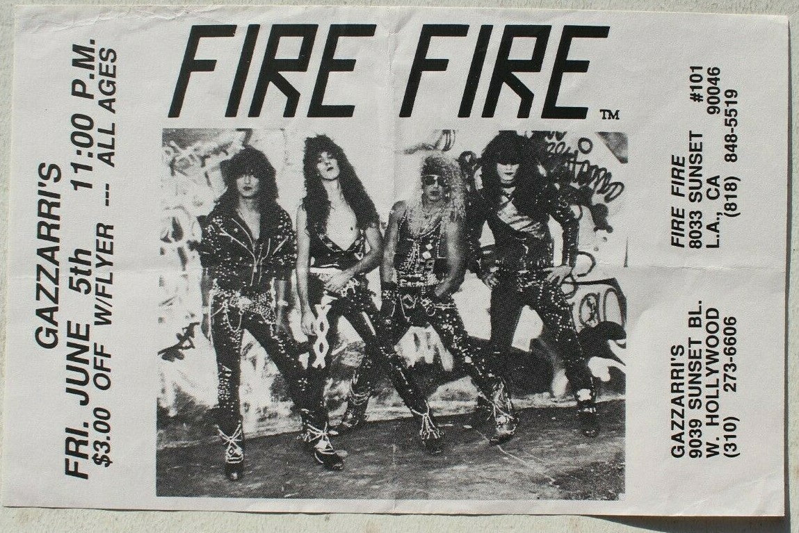 Vtg 1980s 1990s Punk Rock Hair Band Concert Flyer - Fire Fire (Gazzarri's)