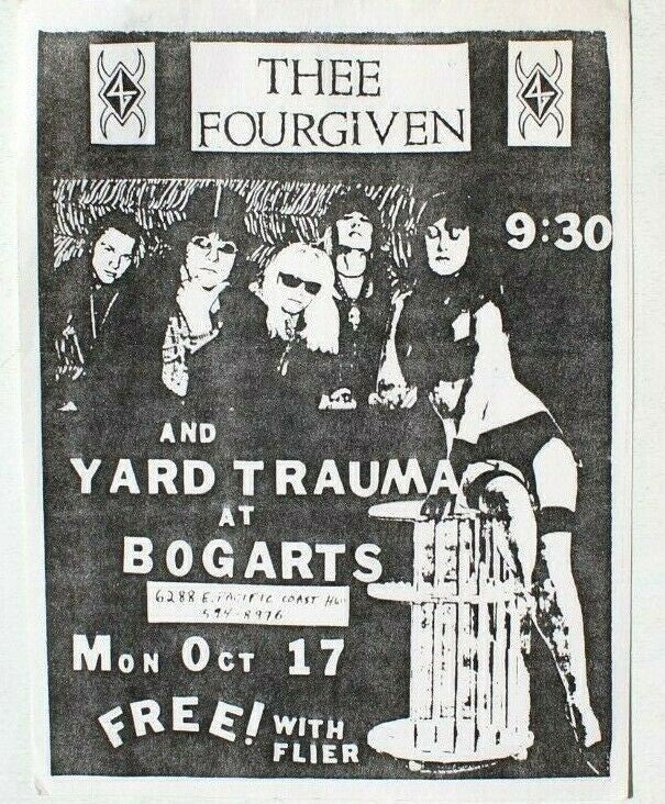 Vtg 1980s Thee Fourgiven & Yard Trauma At Bogarts Punk Rock Concert Flyer CA