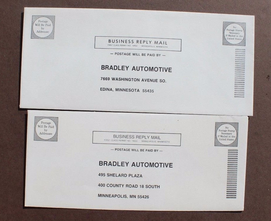 Vtg LOT 2 Company Printed Bradley GT Addressed Envelopes Advertising Brochure