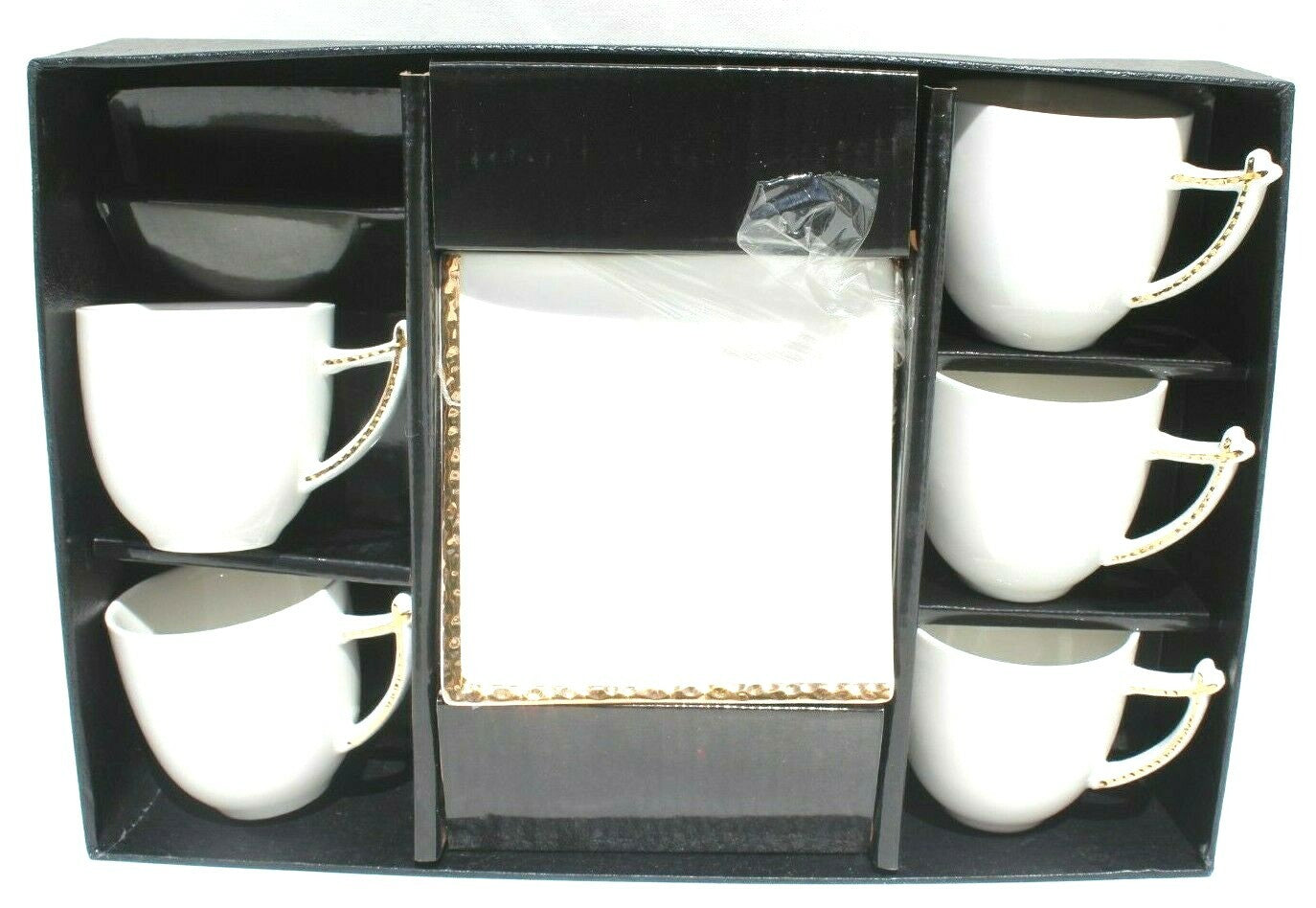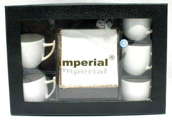 New 6 White & Gold Tea Cups W/ Saucers Plates Bone China Royal Modern Set