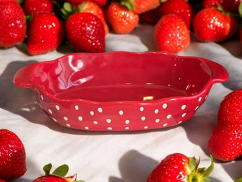 New Ceramic RedStoneware Large Strawberry Dessert Serving Party Dish Kitchen