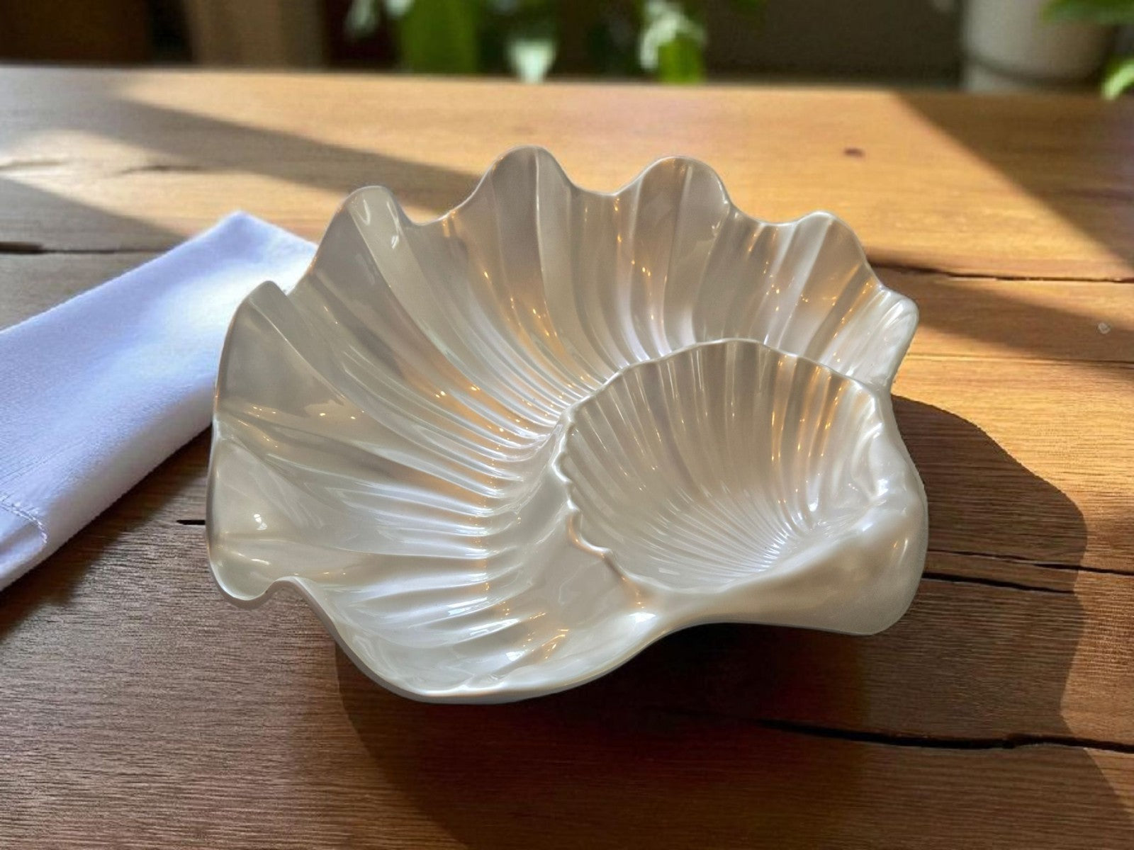 New Large White Opal Melamine Oyster Clam Shaped Appetizer Party Serving Plate