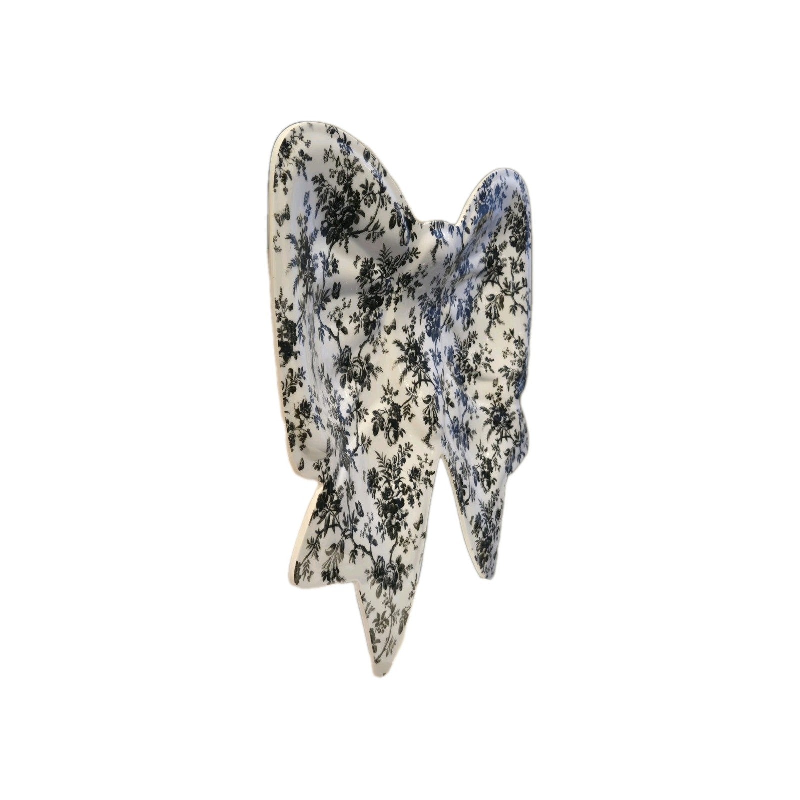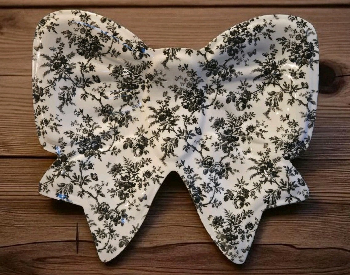 New Shabby Chic Black White Floral Bow Coquette Shaped Melamine Serving Tray