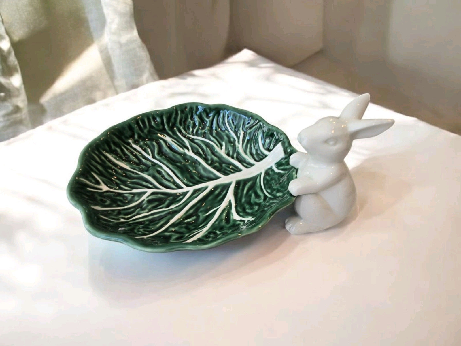 New White / Green Easter Bunny Cabbage Leaf Spring Serving Appetizer Food Tray