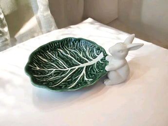 New White / Green Easter Bunny Cabbage Leaf Spring Serving Appetizer Fodd Tray