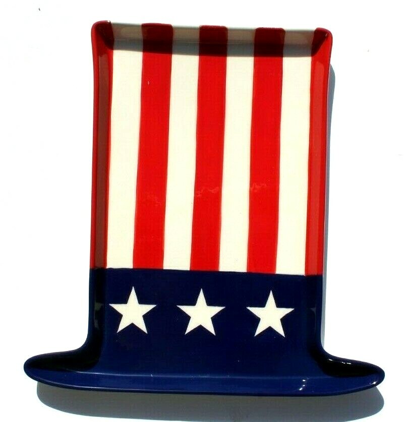 New Sur La Tabla Red White & Blue Patriotic Uncle Sam Hat Serving Tray Plate