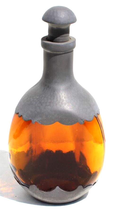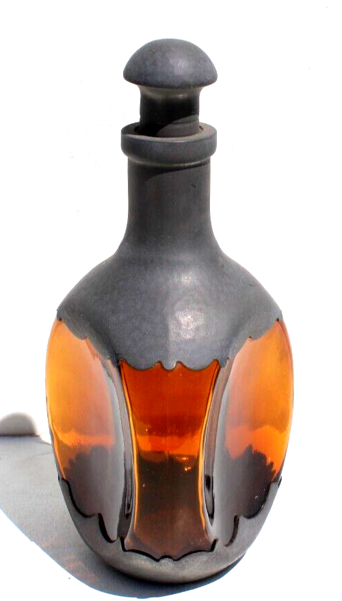 Vintage KMD Royal Holland Daalderop Amber Glass Pewter Decanter Bottle w/Stopper