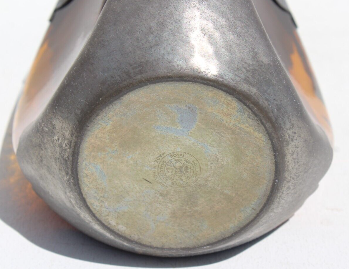 VTG KMD Royal Holland Daalderop Amber Glass Pewter Decanter Bottle w/ Stopper