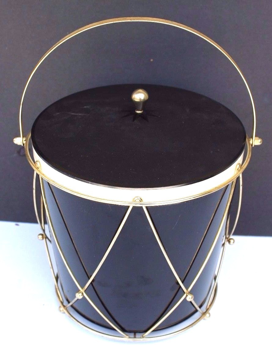Vtg Mid Century Thermos Ice Tub, Ice Bucket, Black Drum, Model 9940, Made in USA