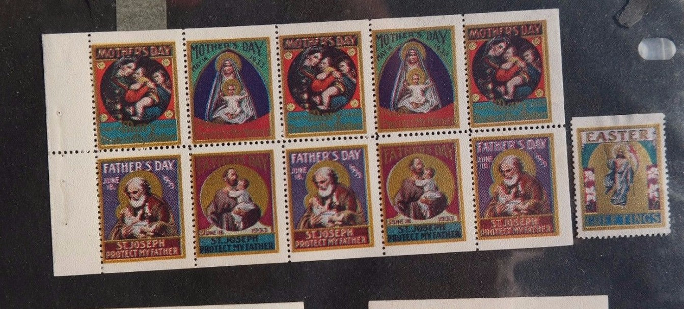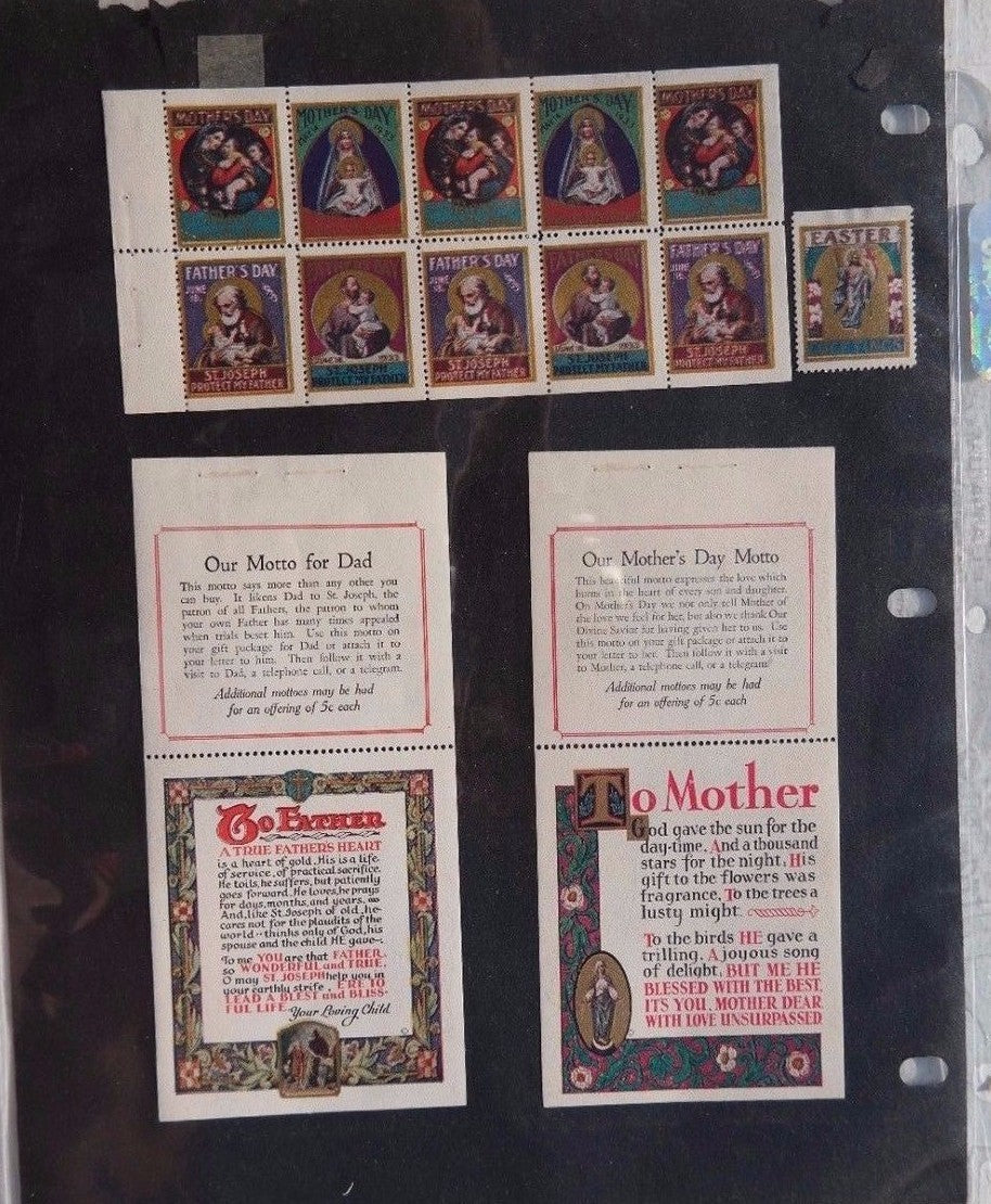 Vintage 1933 Our Mothers Day / Fathers Day Motto Stamps (St. Joseph)