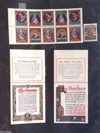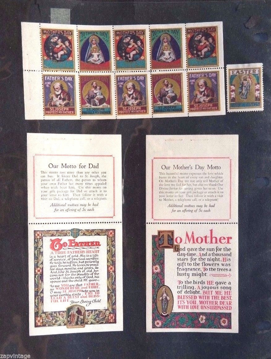 Vintage 1933 Our Mothers Day / Fathers Day Motto Stamps (St. Joseph / Mary))