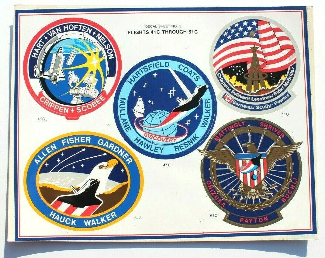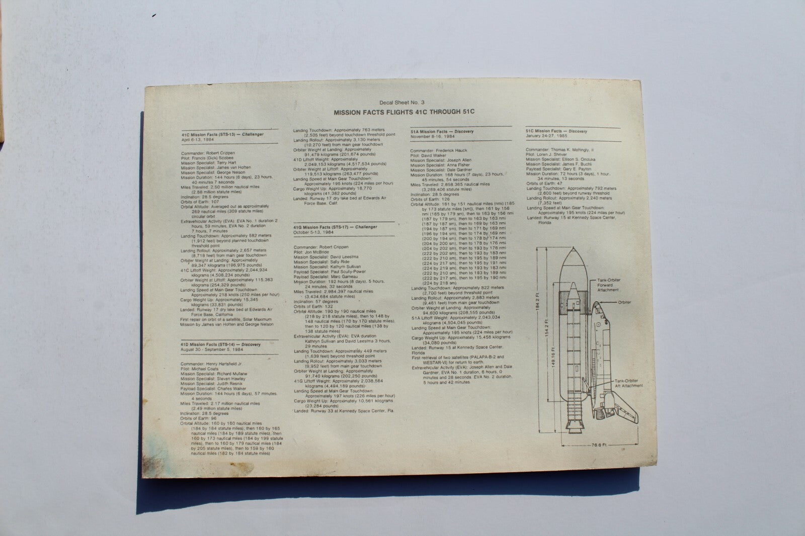 VINTAGE Space Shuttle Decal Sheet No. 3. Flights 41C through 51C Stickers