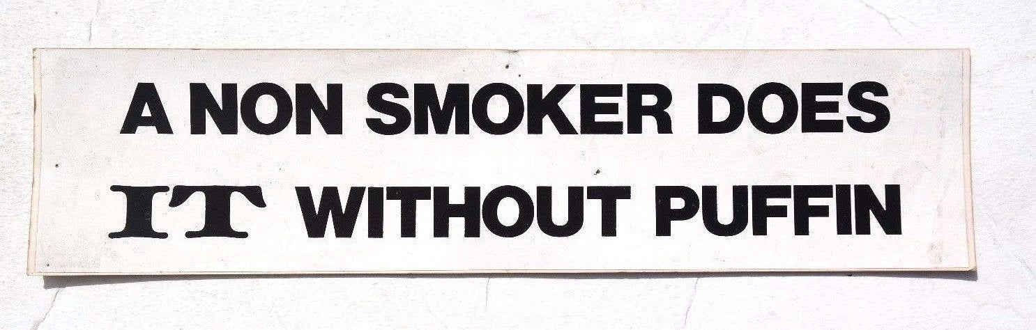 Vtg 1960's A NON SMOKER DOES IT WITHOUT PUFFIN Bumper Sticker Decal (Funny)