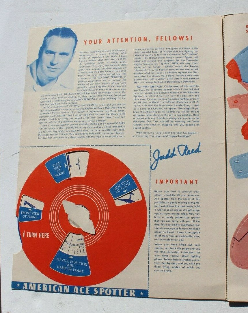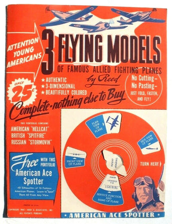 NOS 1944 American Ace Spotter 3 Flying Models Punch-Out Planes Reed & Associates