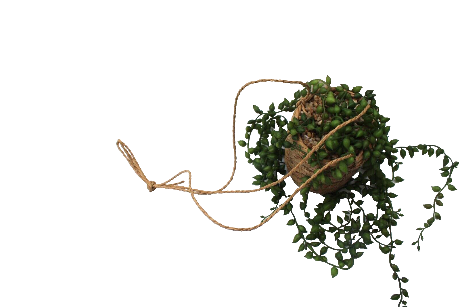 New BOHO Wicker Vase W/ Rocks Fake Hanging Plant Artificial Beaded Succulent