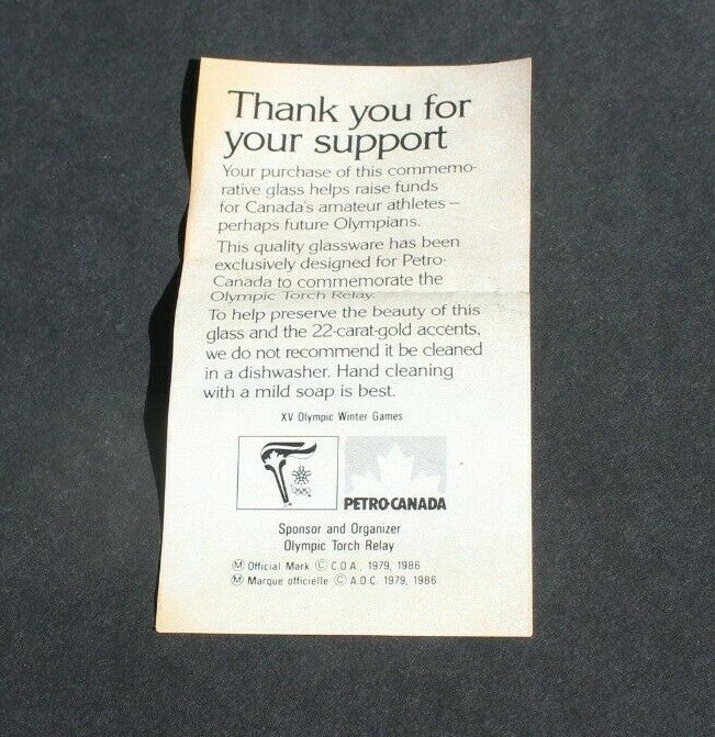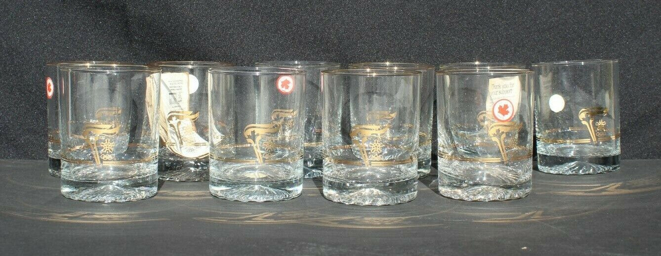 10 Pc1986 Canadian Olympics Commemorative 22K Gold Trimmed Whiskey TUMBLER Glass