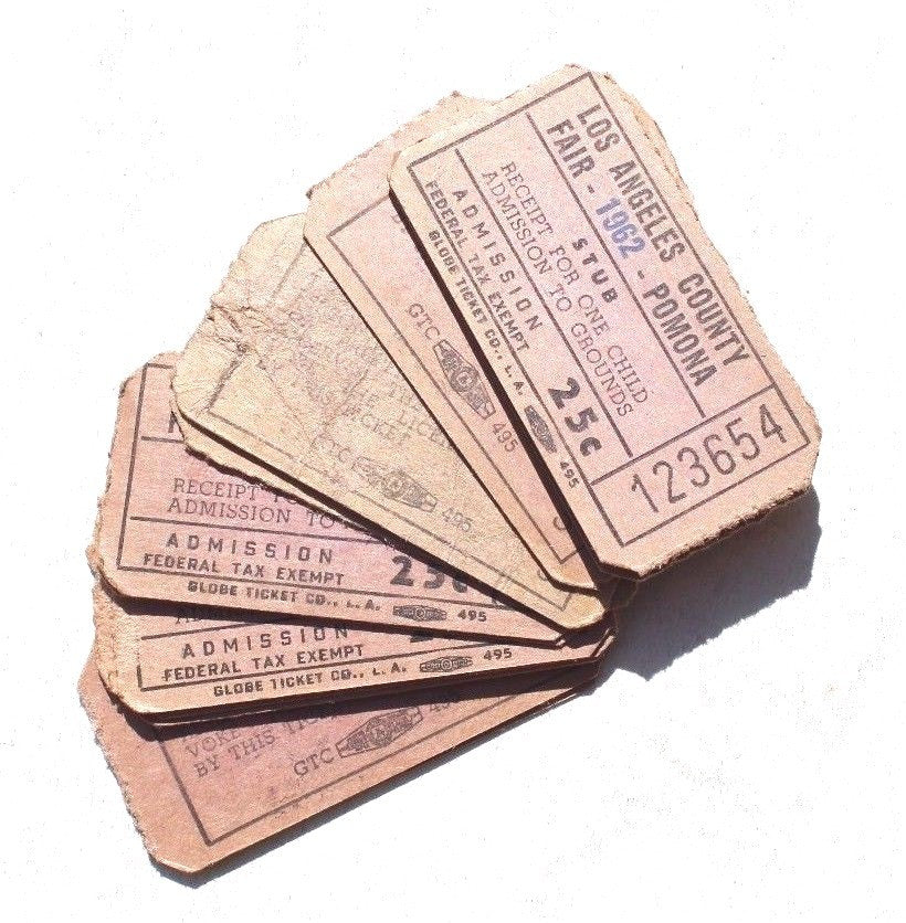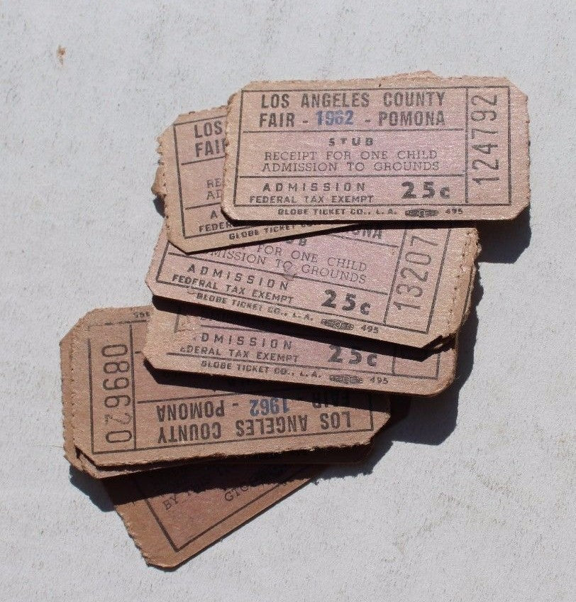 13 Vintage 1962 Los Angeles County Fair Pomona Child Admission Ticket Stub