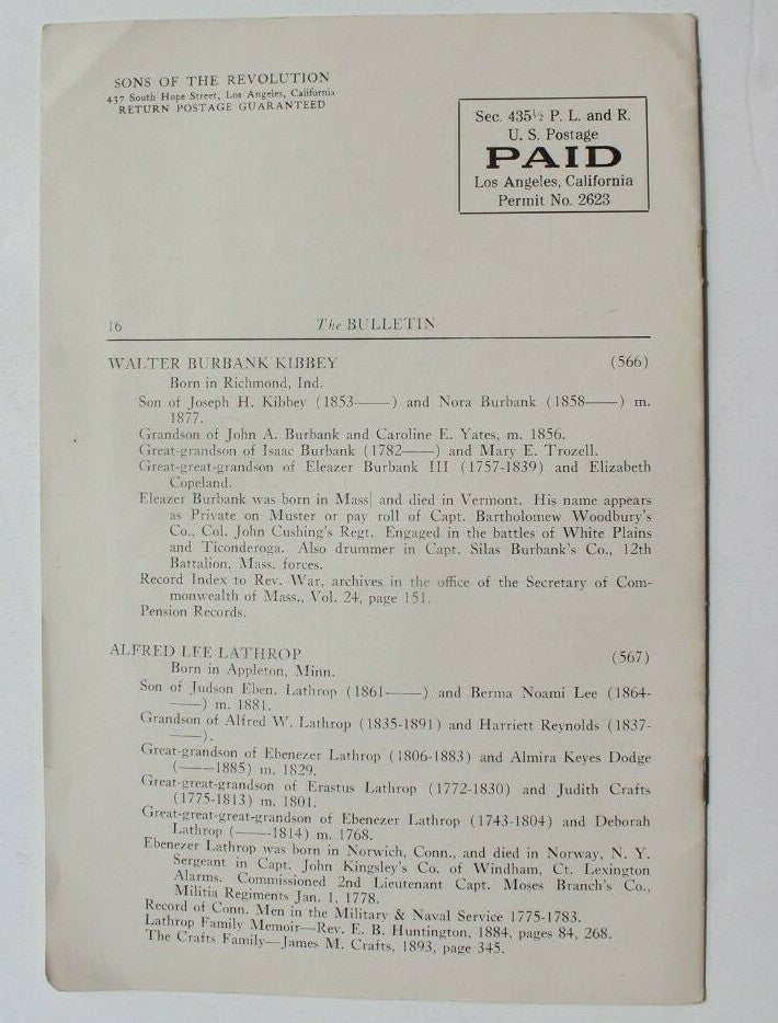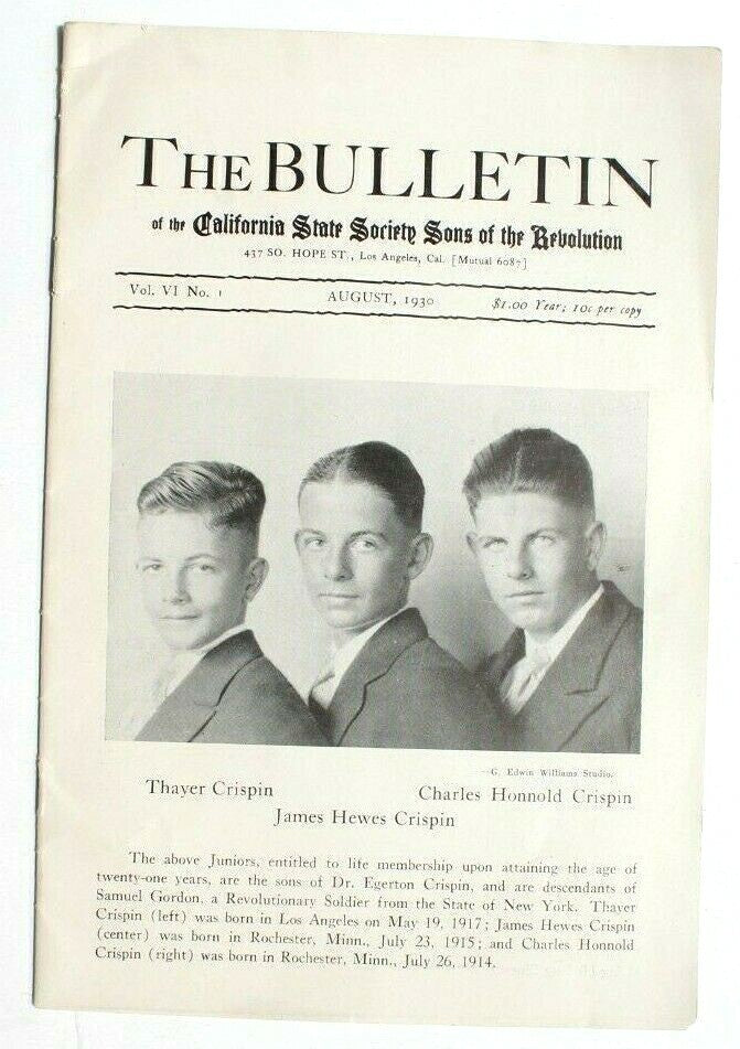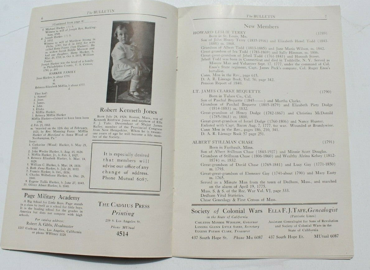 1930 California Society Colonial Wars Sons of the Revolution Bulletin Magazine