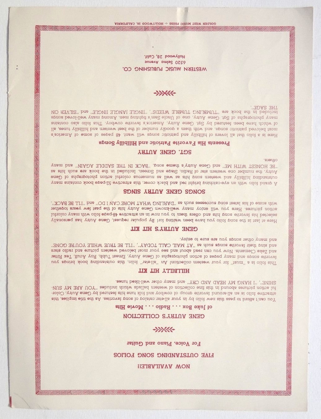 1941 Vintage Sheet Music: GENE AUTRY & FRED ROSE Tears On My Pillow WESTERN PUBL