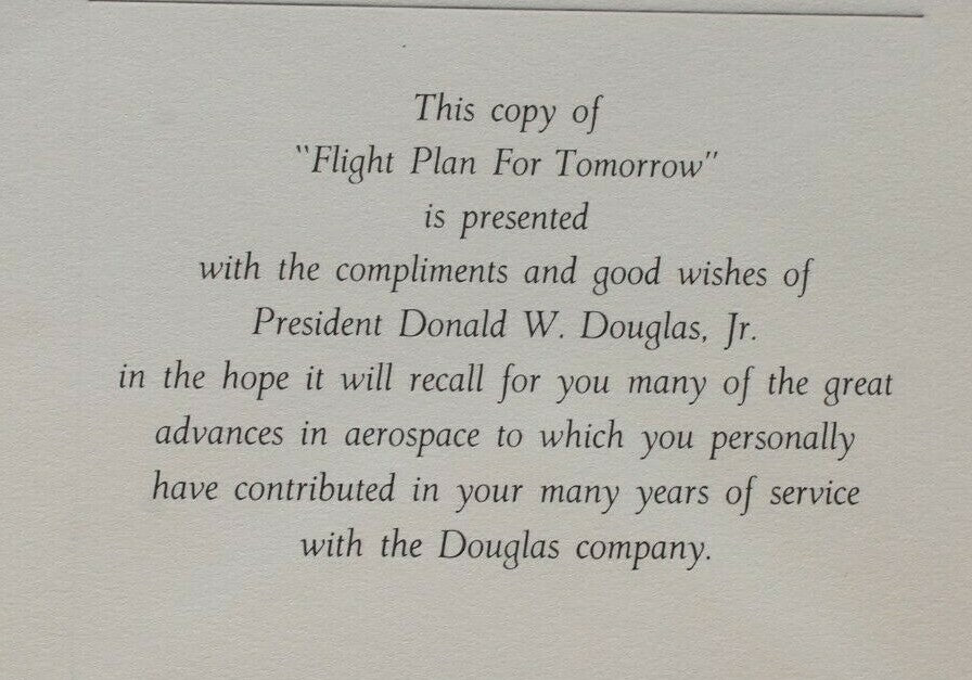 1962 First Edition FLIGHT PLAN FOR TOMORROW The Douglas Story W/ Letter Inside