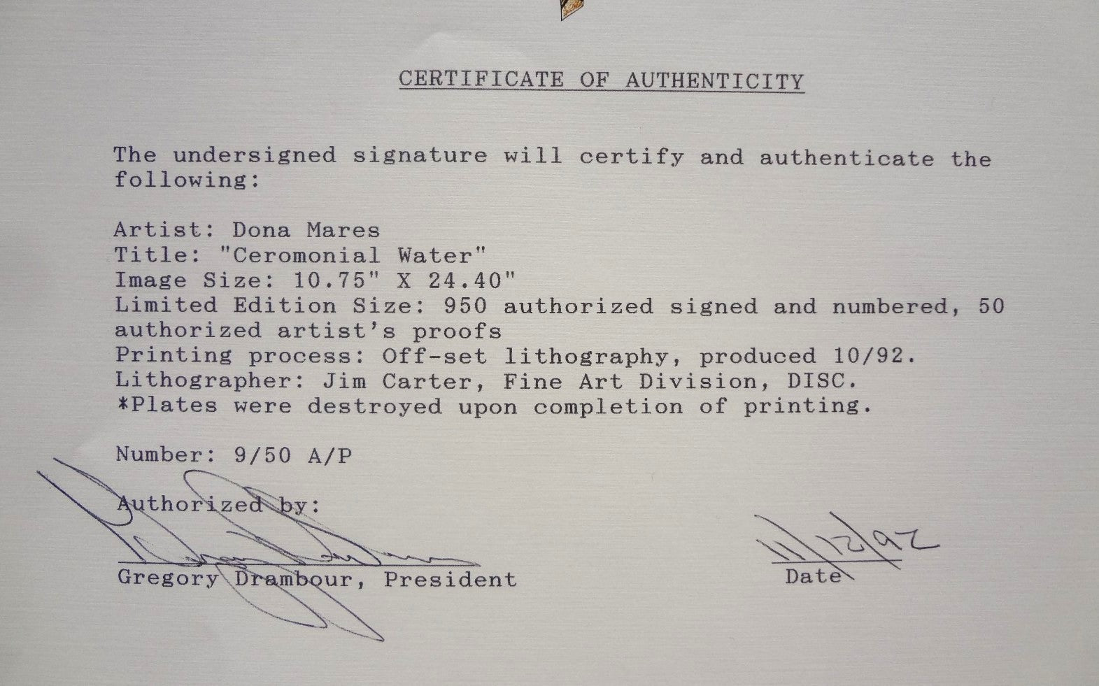 1992 DONA MARES "The Unseen Wolf" Signed W/ Certificate Lithograph Print 9/50