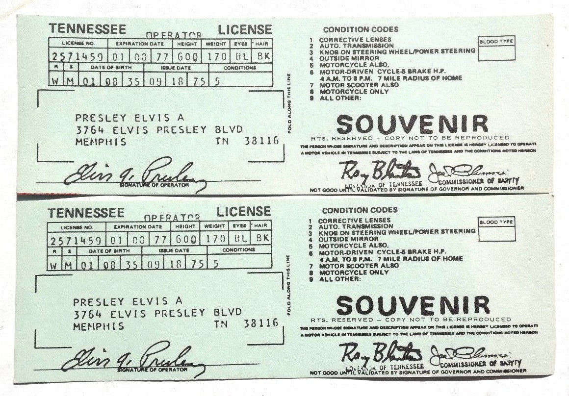 2 Vintage 1975 ELVIS PRESLEY TENNESSEE DRIVERS LICENSE