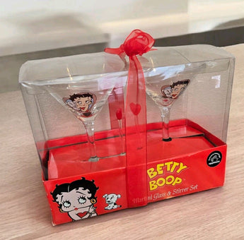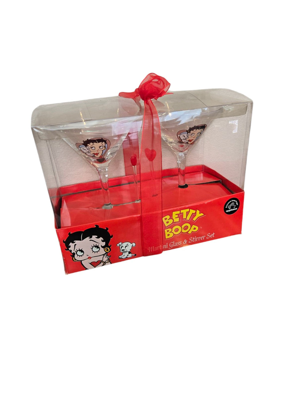 2004 Set of 2 Betty Boop Martini Glasses Displayed by Applause NOS