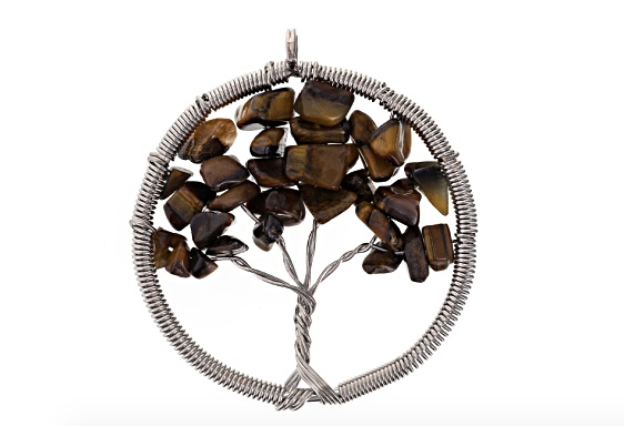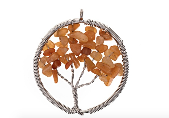 5pc Tree Of Life Chips Pendant Set Qtz Aventurine Quartzite Rose Qtz Tiger Eye