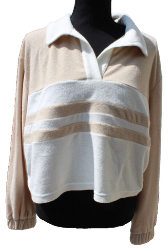 7 For All Mankind Womens V Neck Long Sleeve Cotton Collar Sweater Medium NWT